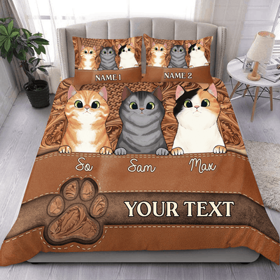 Cat Brown Vintage Personalized Bedding Set, Personalized Gift for Cat Lovers, Cat Mom, Cat Dad - BD037PS08